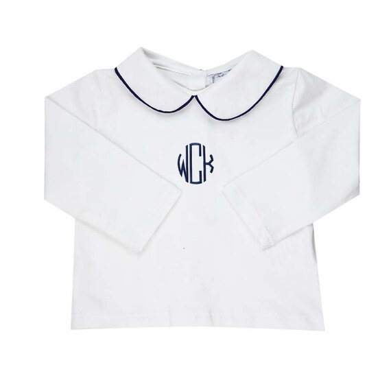 White Knit Peter Pan Collar Shirt Classic Boy Shirt Navy Etsy Uk