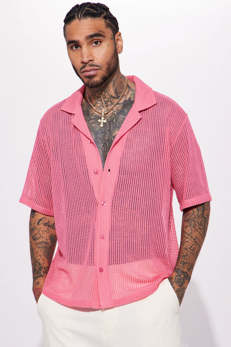 Chainlink Knit Button Up Shirt Pink Fashion Nova Mens Shirts Fashion Nova