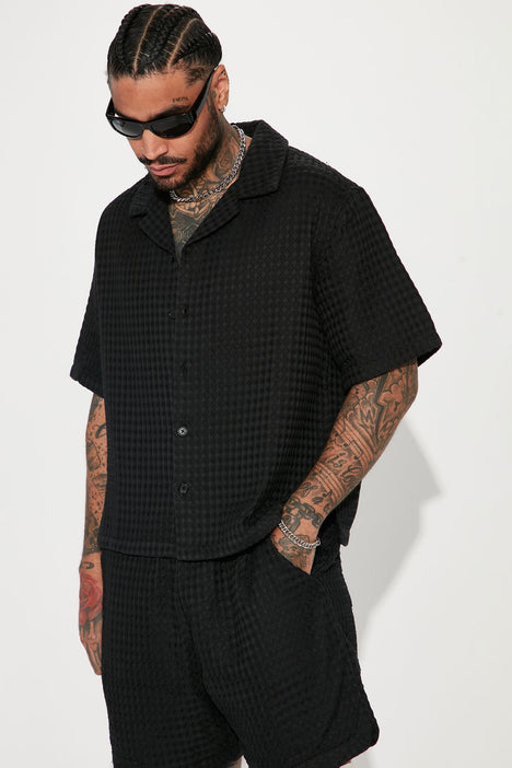 Waffle Knit Textured Button Up Shirt Black Fashion Nova Mens Tees Tanks Fashion Nova